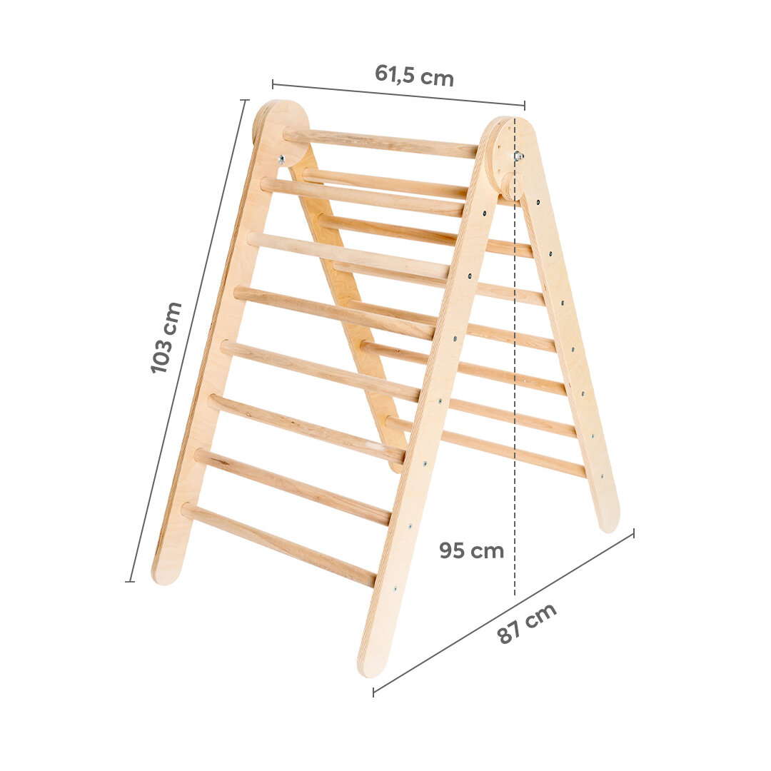 Triunghiul Pikler a fost inventat de pediatrul maghiar dr. Emmi Pikler acum mai bine de 100 de ani. Cățărătoarea poate fi pliabilă sau modulară. Este concepută pentru interior sau pentru exterior, atunci când vremea permite.