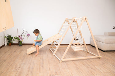 Transformă orice cameră într-o mini zonă de aventură cu locurile noastre de joacă din lemn pentru interior. Concepute special pentru bebeluși și copii mici, fiecare set încurajează cățăratul, alunecarea și joaca imaginativă – totodată sprijinind echilibrul, coordonarea și forța fizică.