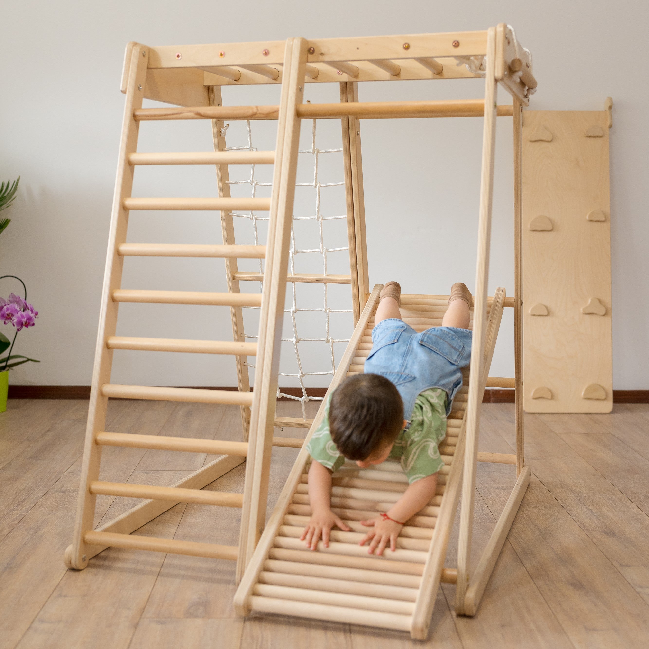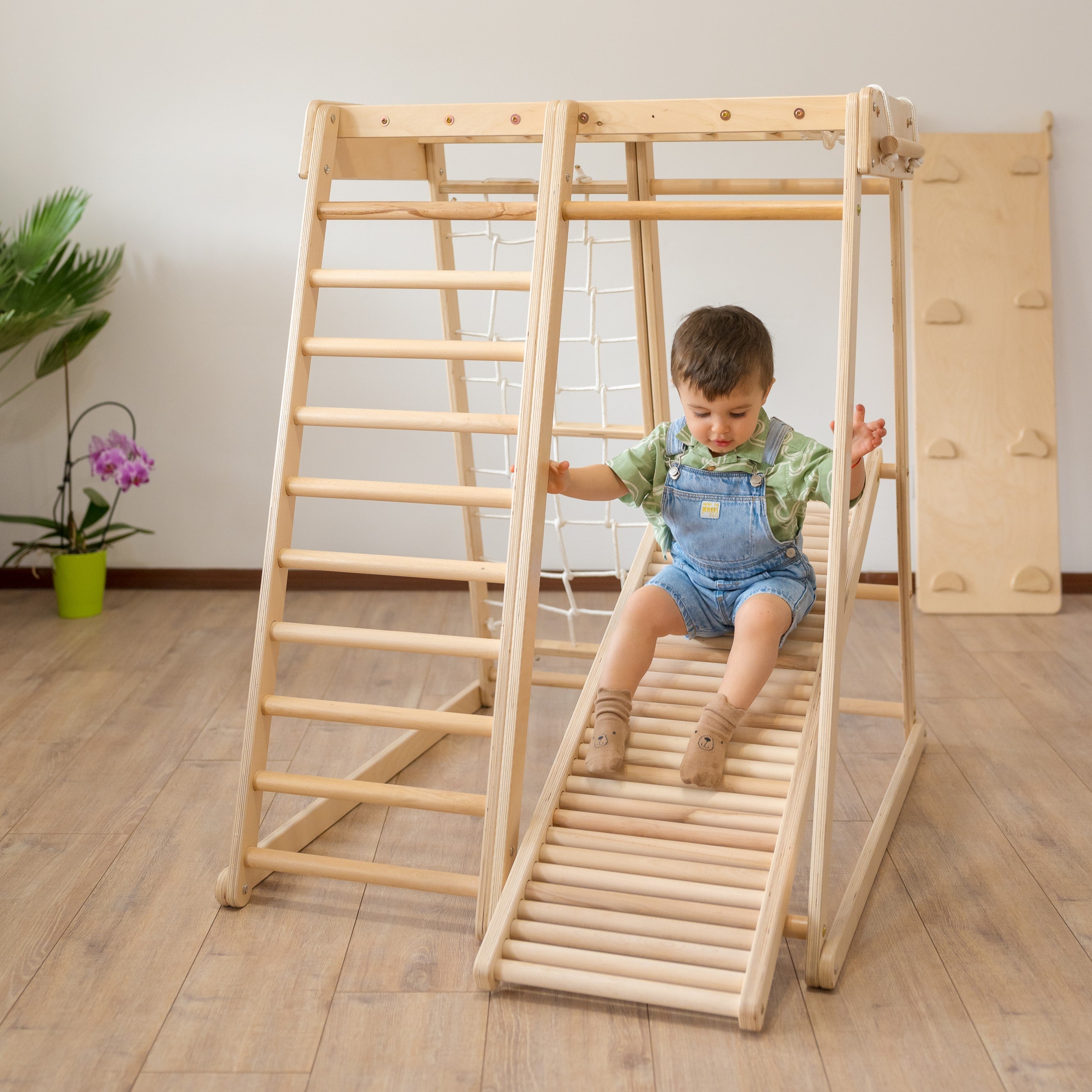 Realizată din placaj de mesteacăn durabil și echipată cu role netede și rezistente, rampa este sigură, stabilă și extrem de captivantă pentru micii exploratori. Este completarea ideală Complex de joaca Gungle Gym din lemn pentru interior sau un element de sine stătător perfect pentru joaca activă acasă.