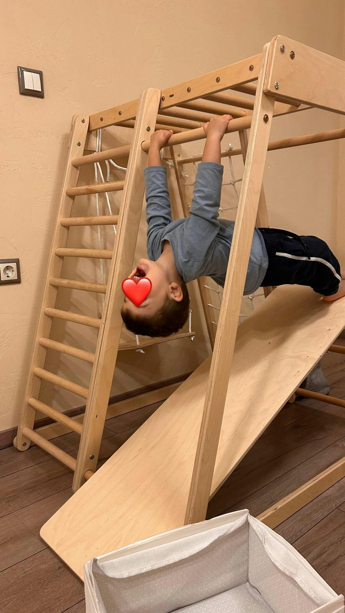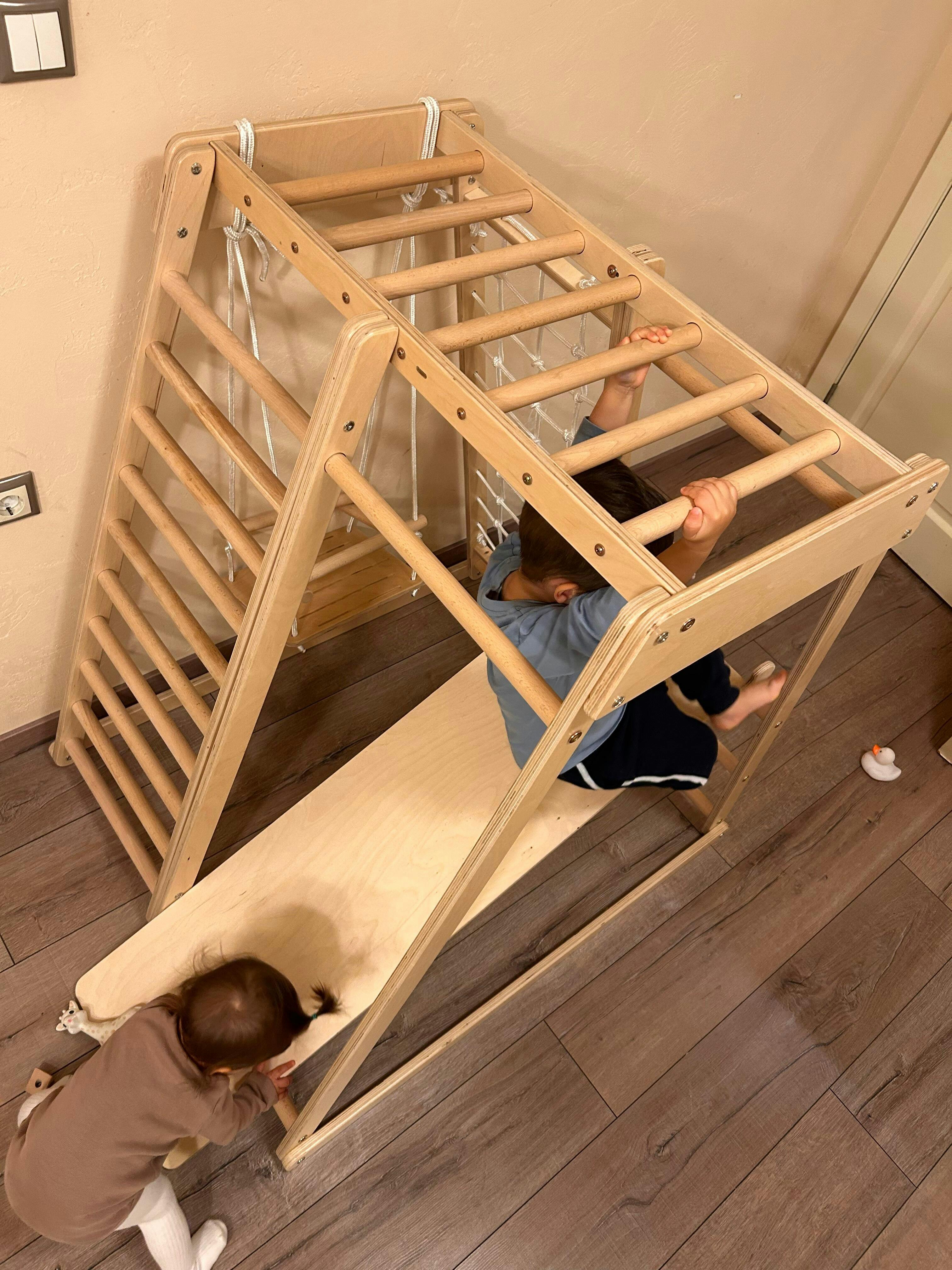 Jungle Gym din lemn pentru interior este creat special pentru copiii aventurieri și pentru părinții care caută o soluție practică pentru casă. Am conceput această versiune a Jungle Gym cu dimensiuni mai compacte, ideale pentru spații mici. Este perfect pentru familiile care doresc să ofere ore îndelungate de distracție și dezvoltare musculară copiilor, optimizând în același timp spațiul din locuință.