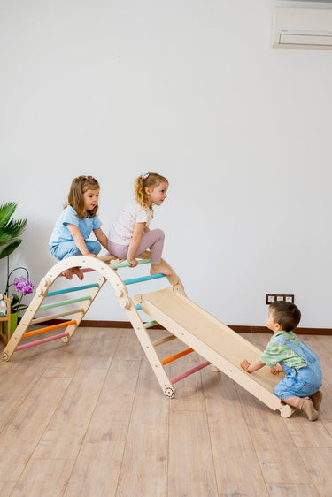 Alege dintre triunghiuri de cățărare pliabile, arcuri, rampe și seturi modulare – toate lucrate manual din lemn natural și finisate cu materiale netoxice. Ideale pentru camerele de joacă de acasă, aceste cățărătoare cresc odată cu copilul și transformă joaca de zi cu zi într-o adevărată aventură educativă.
