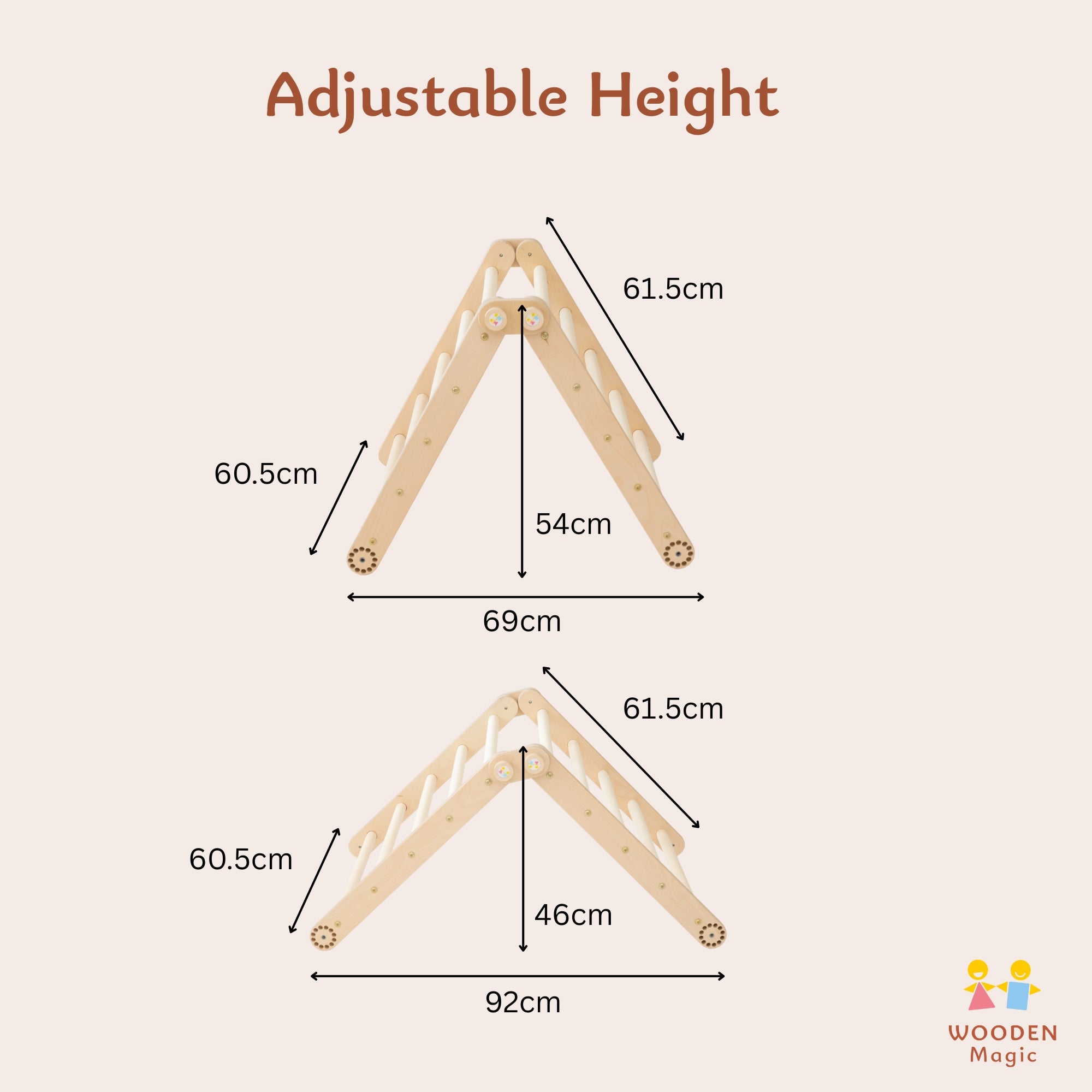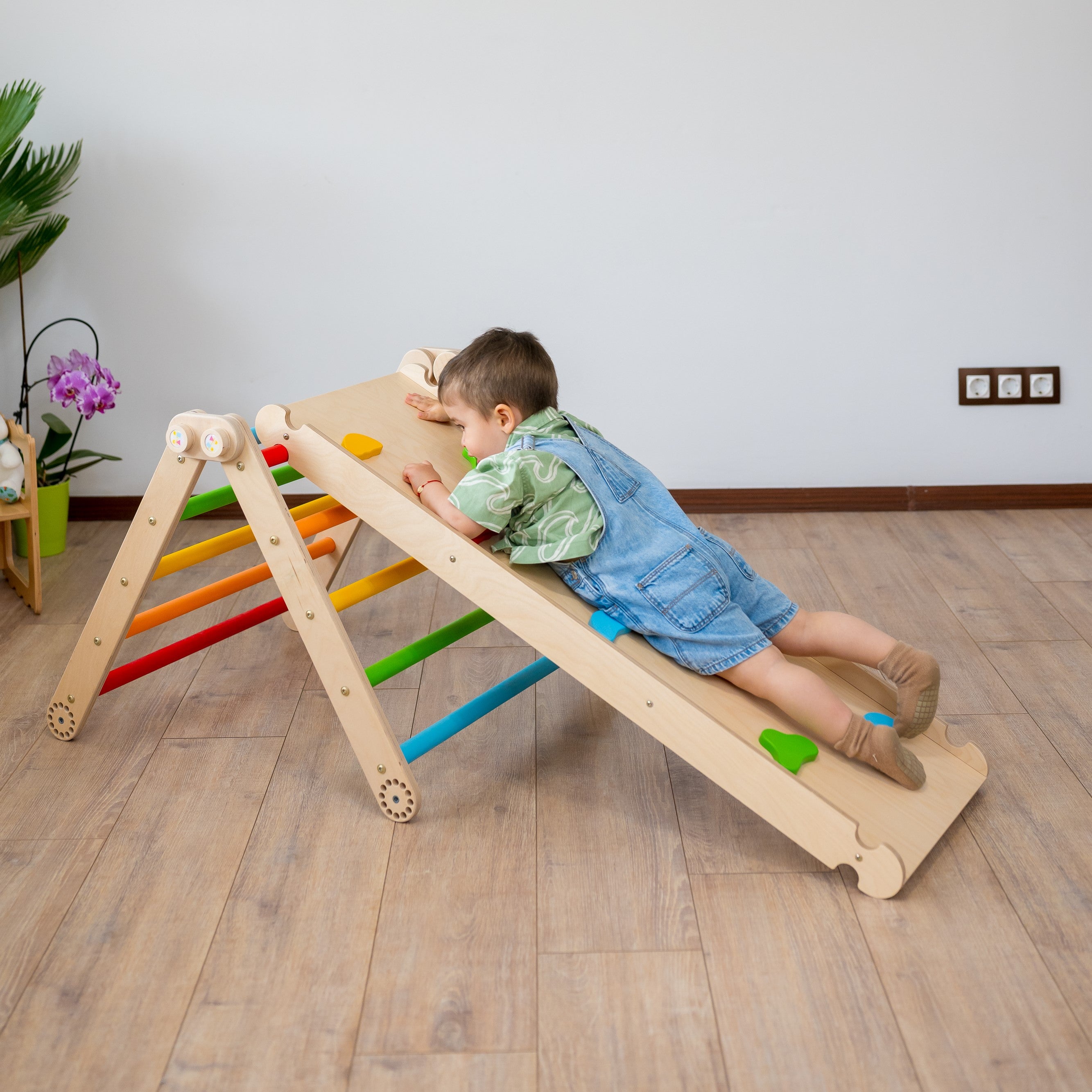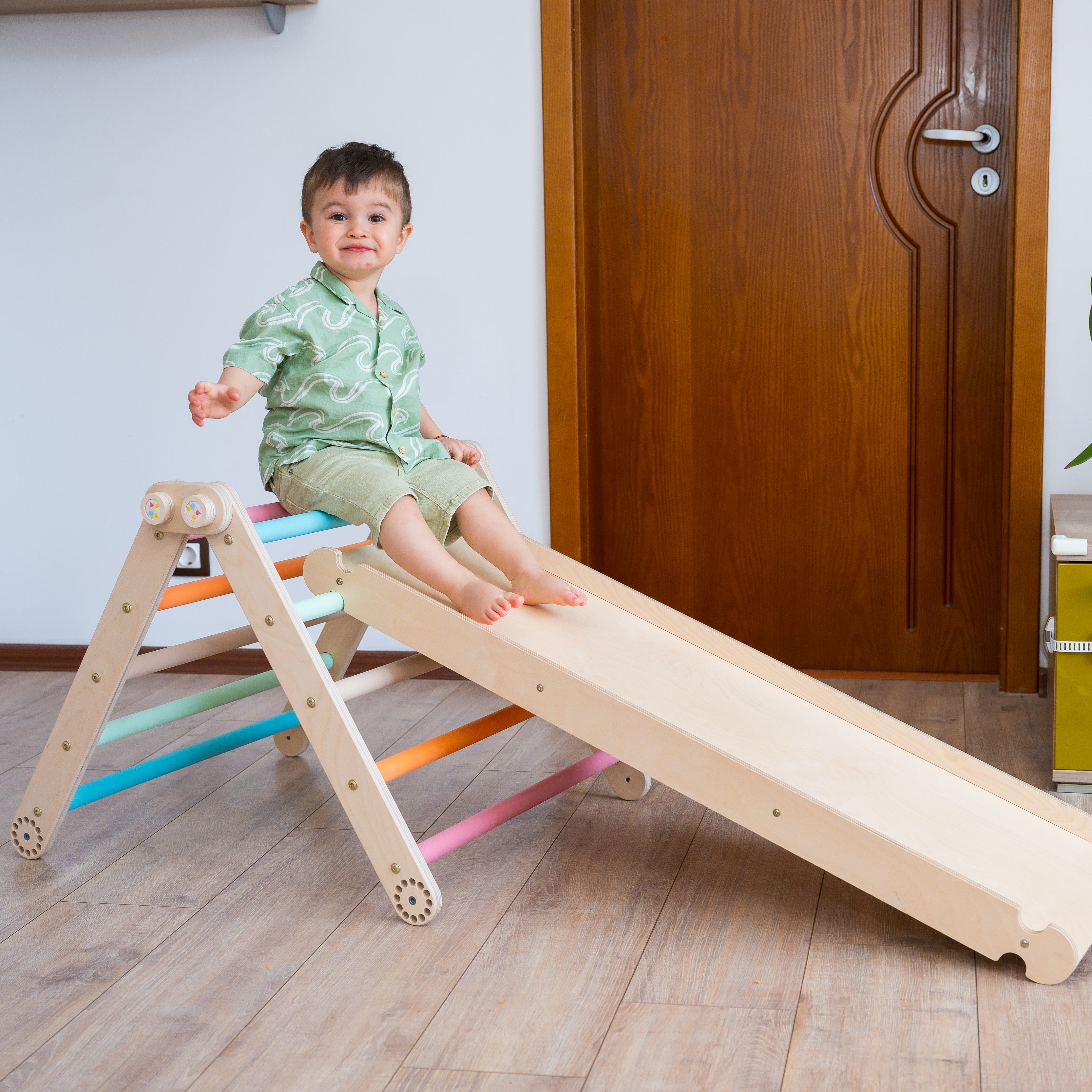 But that's not all – our climbing triangle comes with a double-sided ramp, adding even more excitement and versatility to playtime! One side can be used for sliding and the other one for climbing.