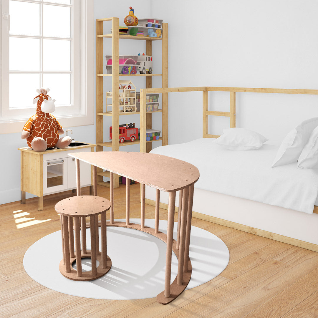 Am proiectat special arcul cu un design scandinav frumos, care ii permite sa fie folosit si ca birou pentru copii, sau ca masuta laterala/decorativa pe hol, sufragerie sau alta camera.