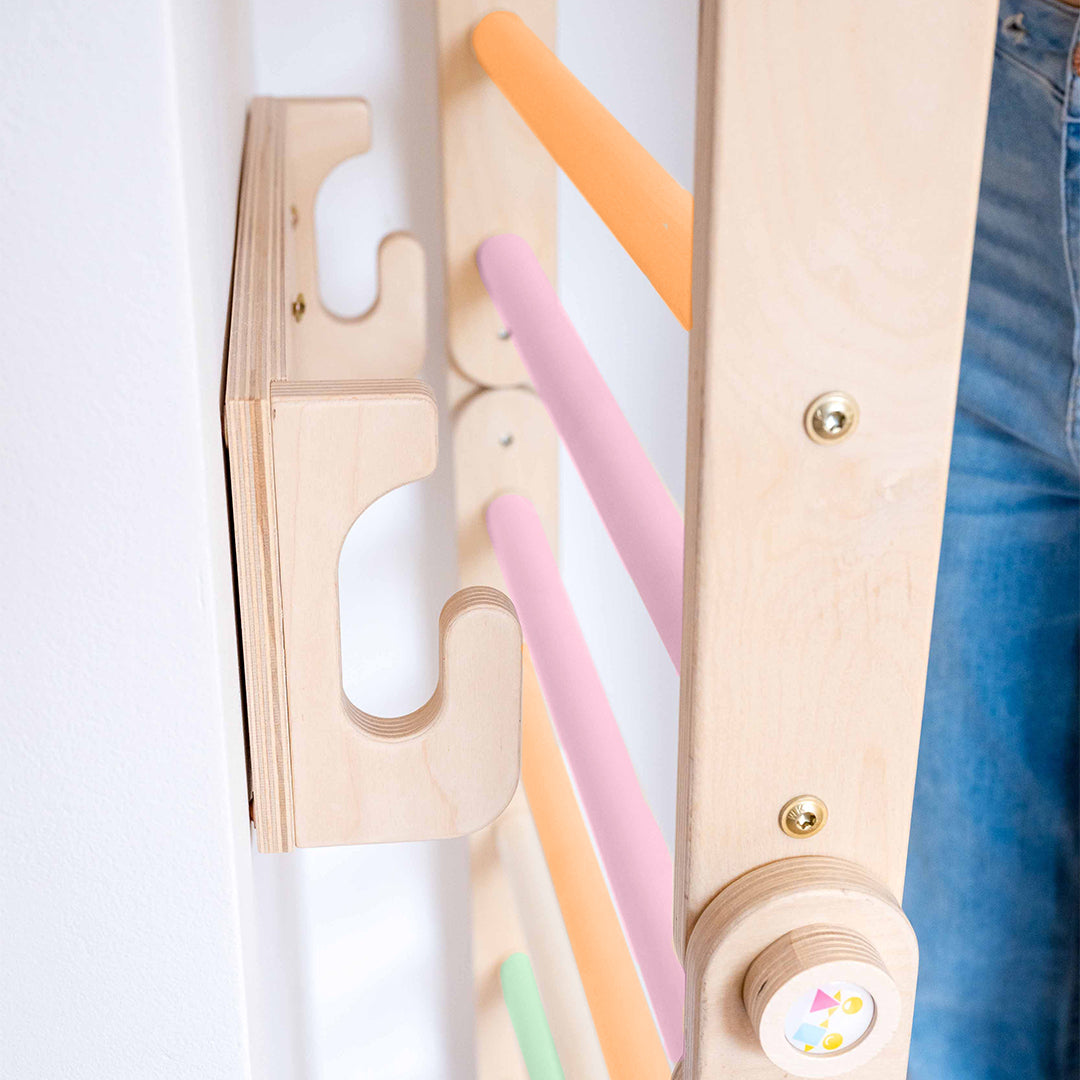 Simplu de instalat - trebuie doar să agățați triunghiul Pikler pe suporturile de perete pentru o transformare ușoară.