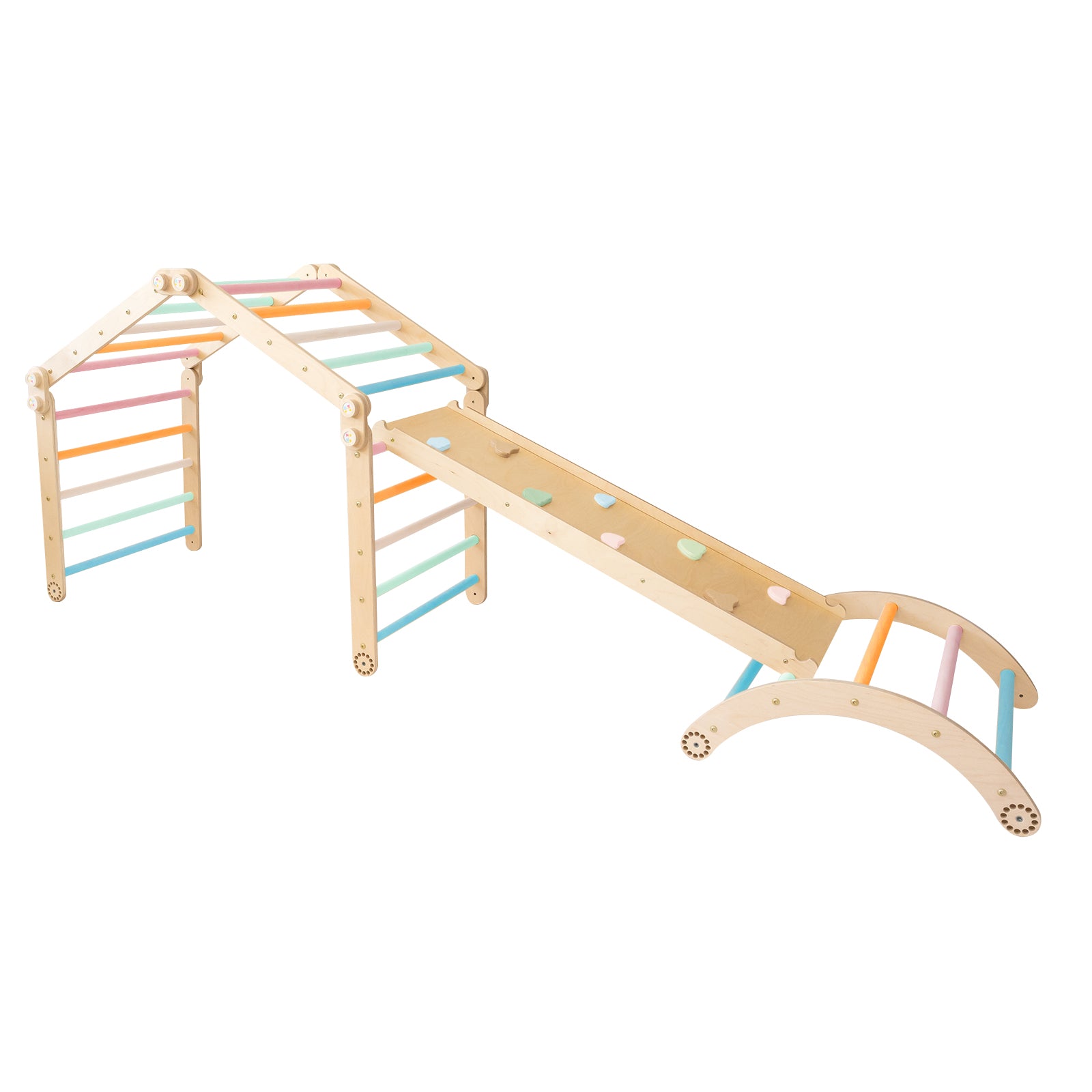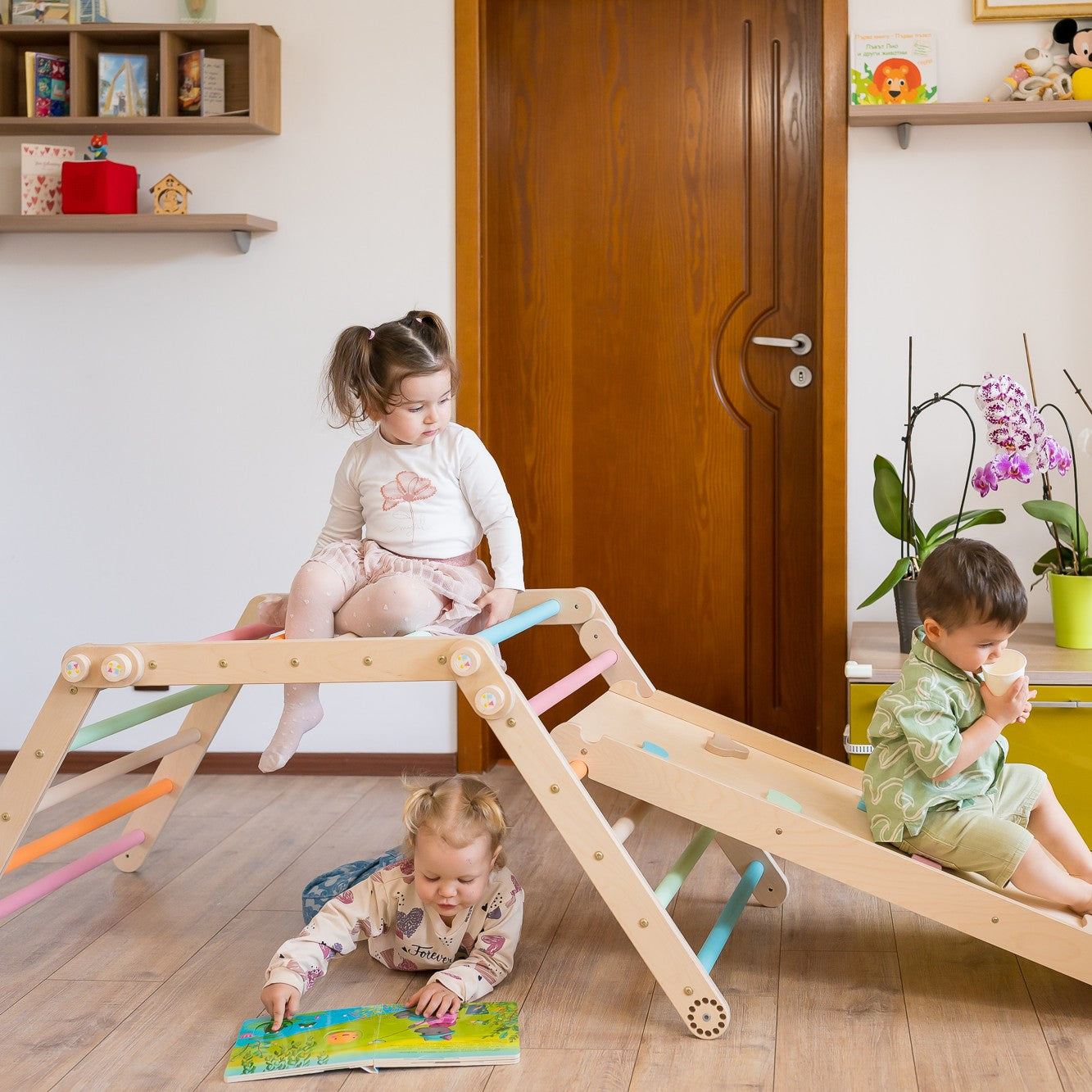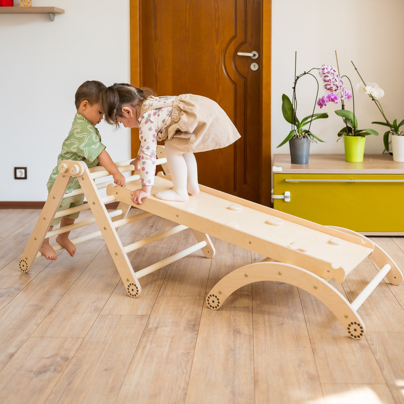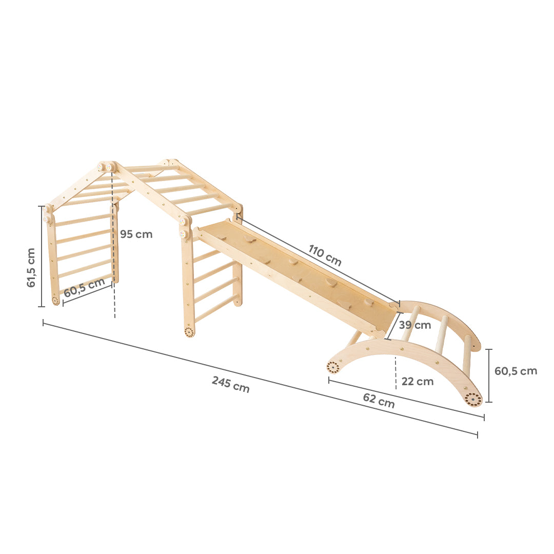 Set de Catarare Montessori 3in1 : Triunghi Pikler 4 module + Arca/Balansoar + Rampa/Tobogan