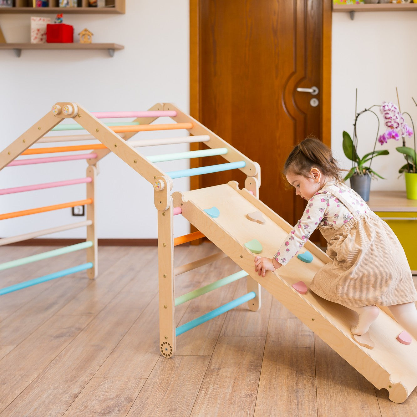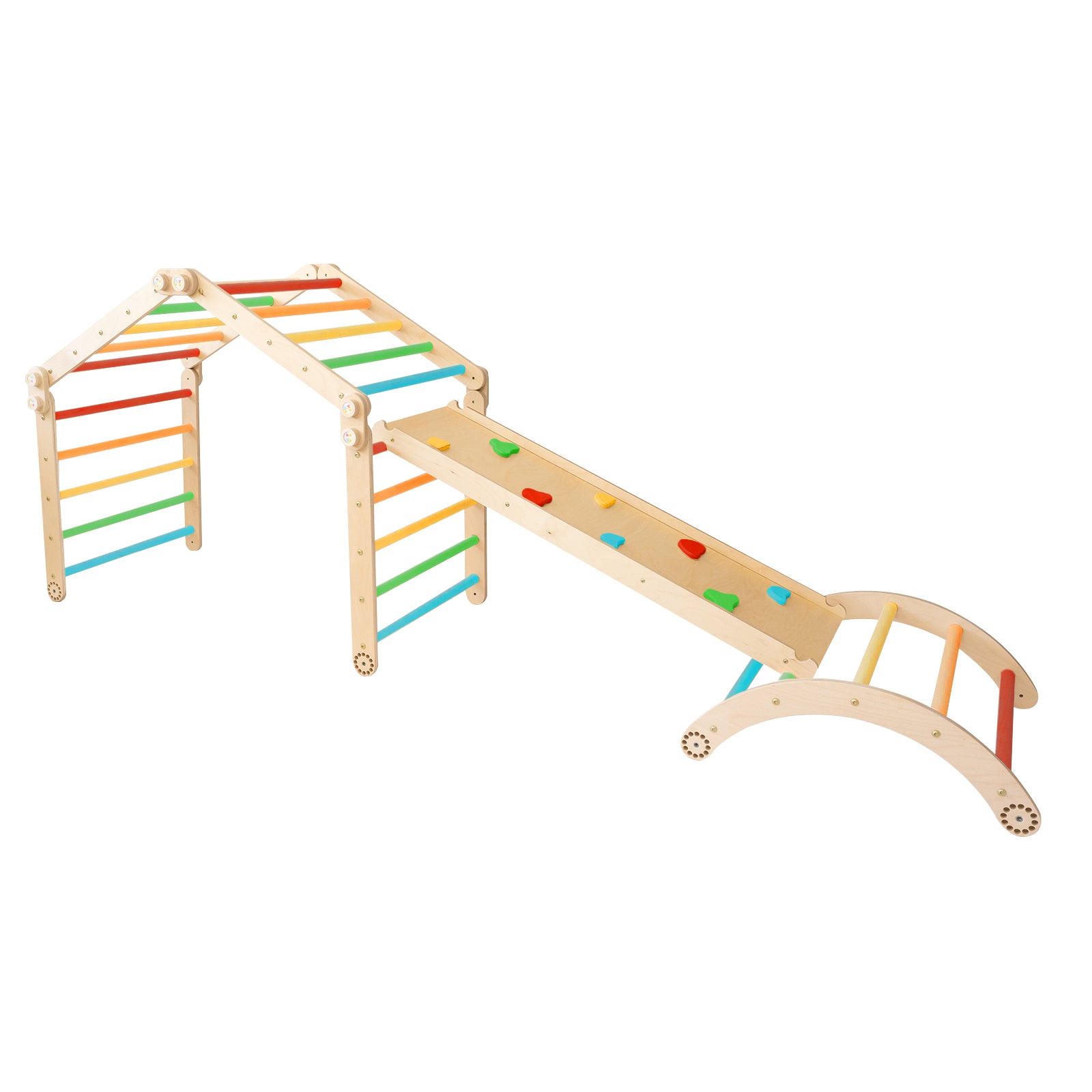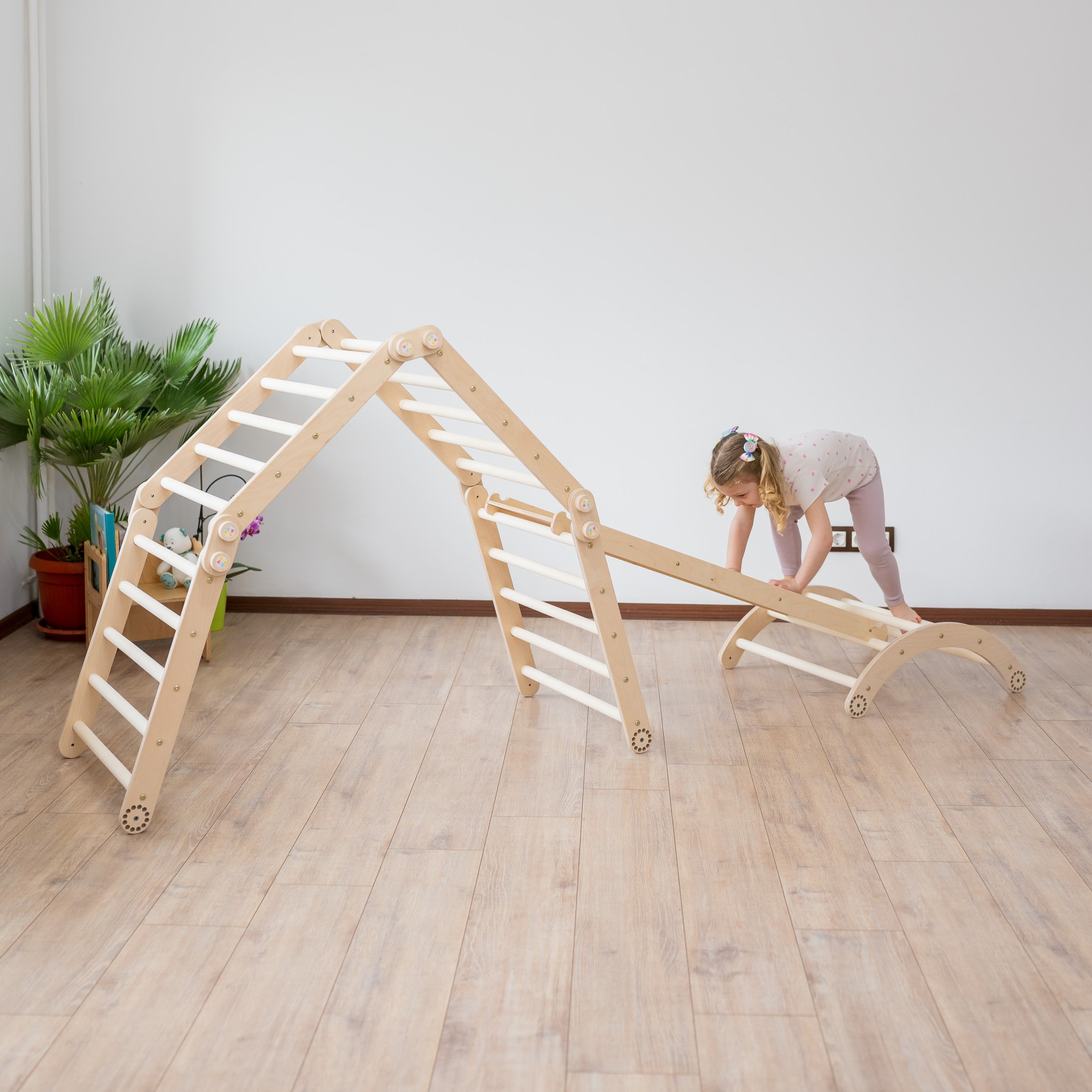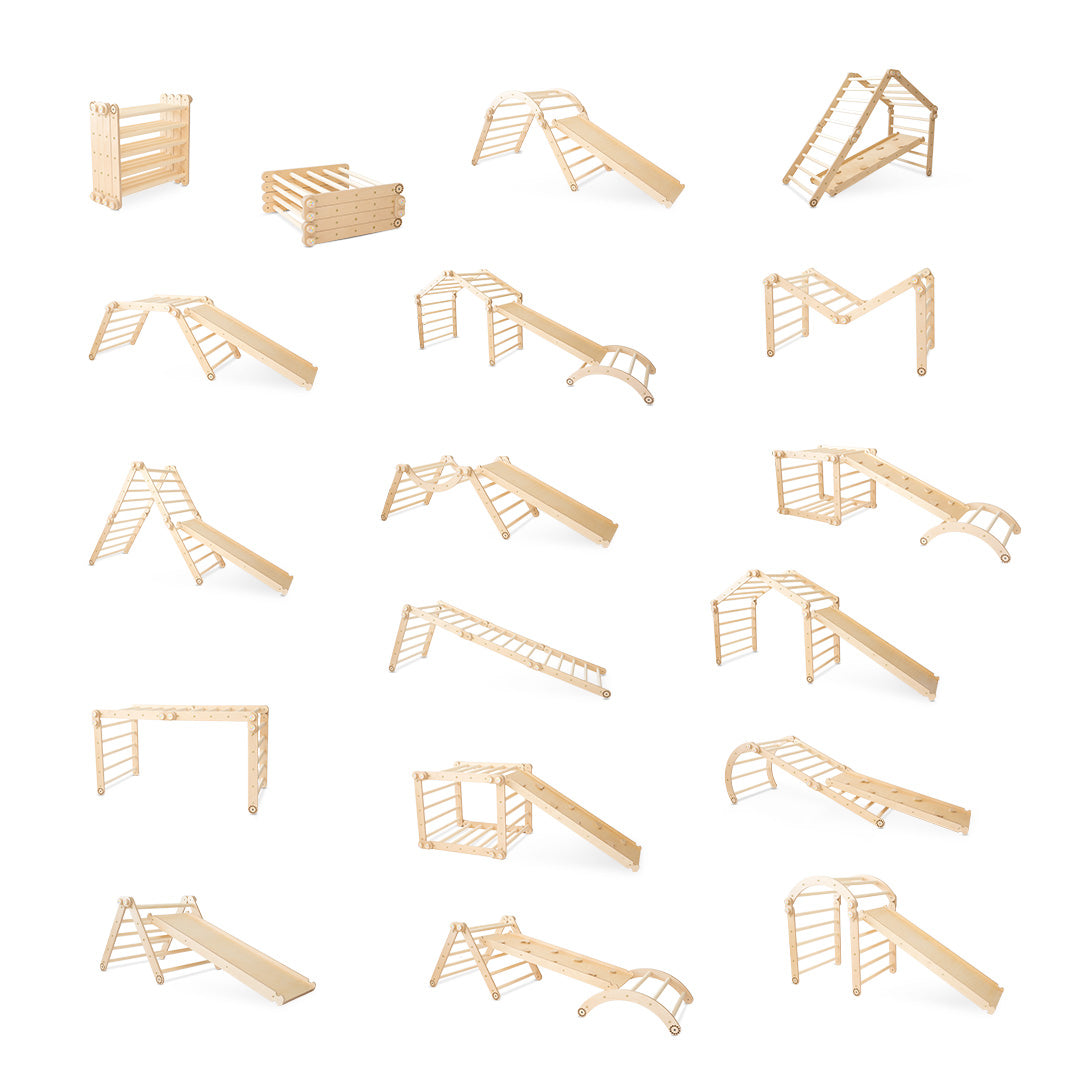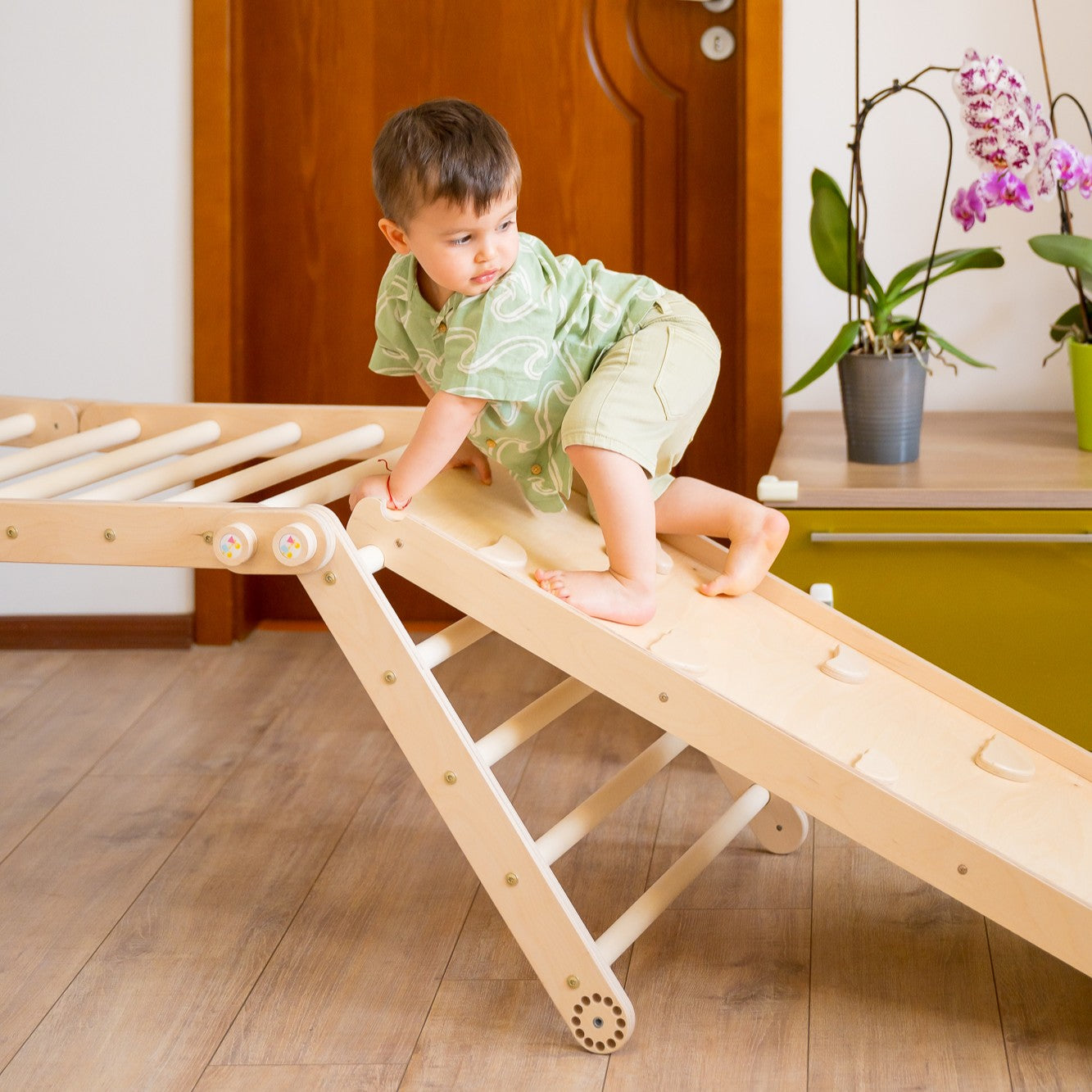 Set de Catarare Montessori 3in1 : Triunghi Pikler 4 module + Arca/Balansoar + Rampa/Tobogan